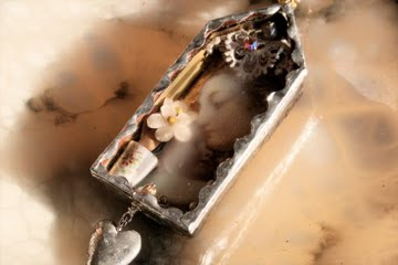 My fascination with reliquaries was the inspiration for this piece. I wanted to create something meaningful that was a reflection of me, something personal...for this giveaway. I love this piece that reflects my love of tiny things, feminine images, babies in their mother's embrace, flowers, lace, hearts, all in warm colors of the Italian countryside.